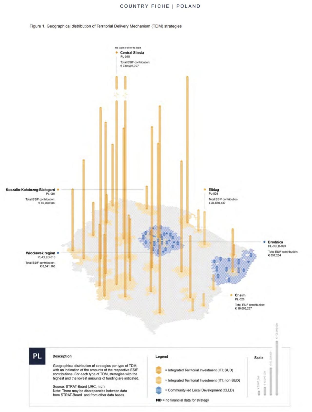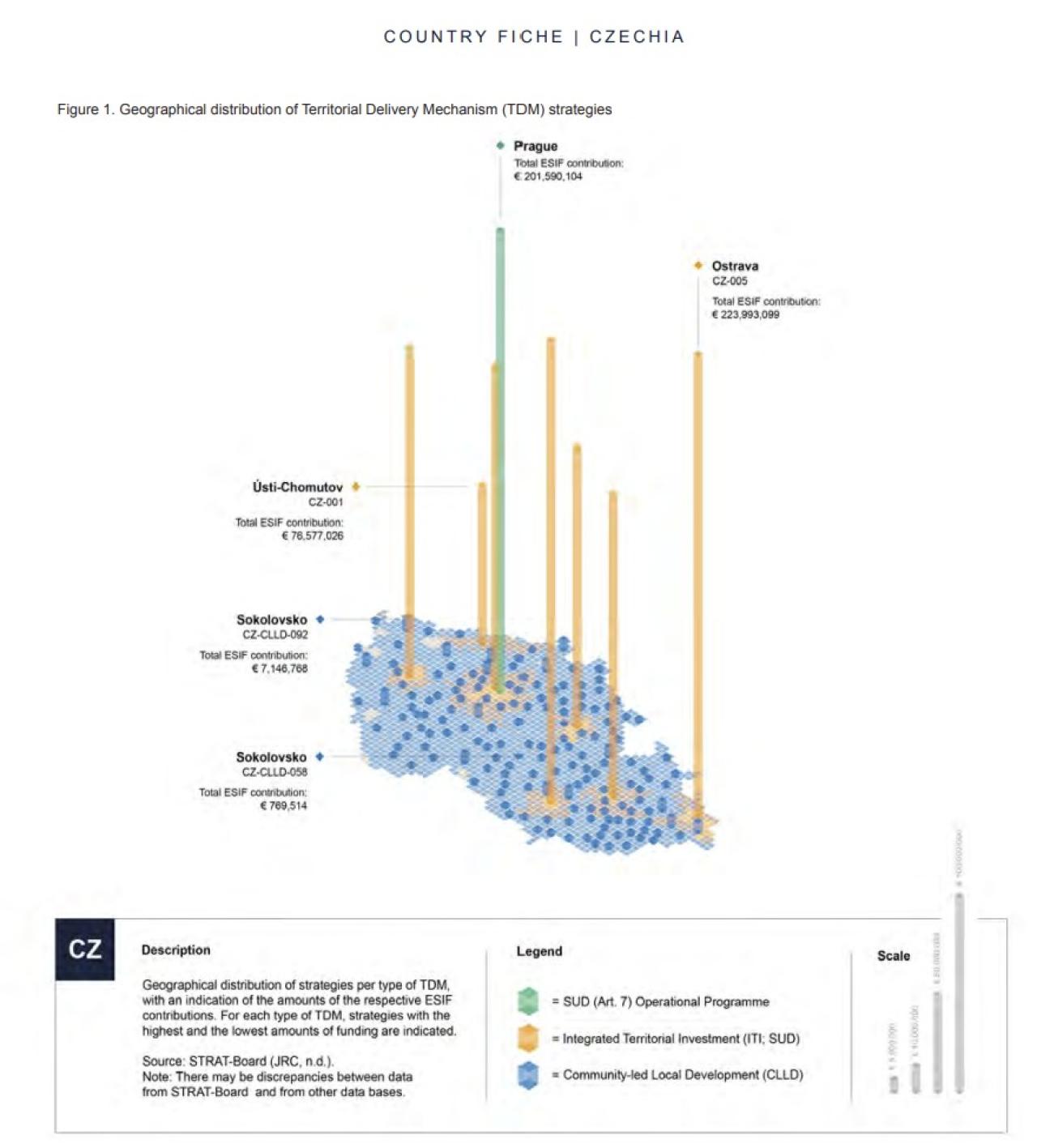 Przedstawione podczas rozmowy materiały graficzne, oparte na danych z raportu Komisji Europejskiej, ilustrowały sposób wydatkowania środków polityki spójności w ramach instrumentów terytorialnych w Polsce i w Czechach. Dane te wskazują na wyraźne różnice w poziomie wsparcia kierowanego do obszarów wiejskich w porównaniu z obszarami miejskimi.